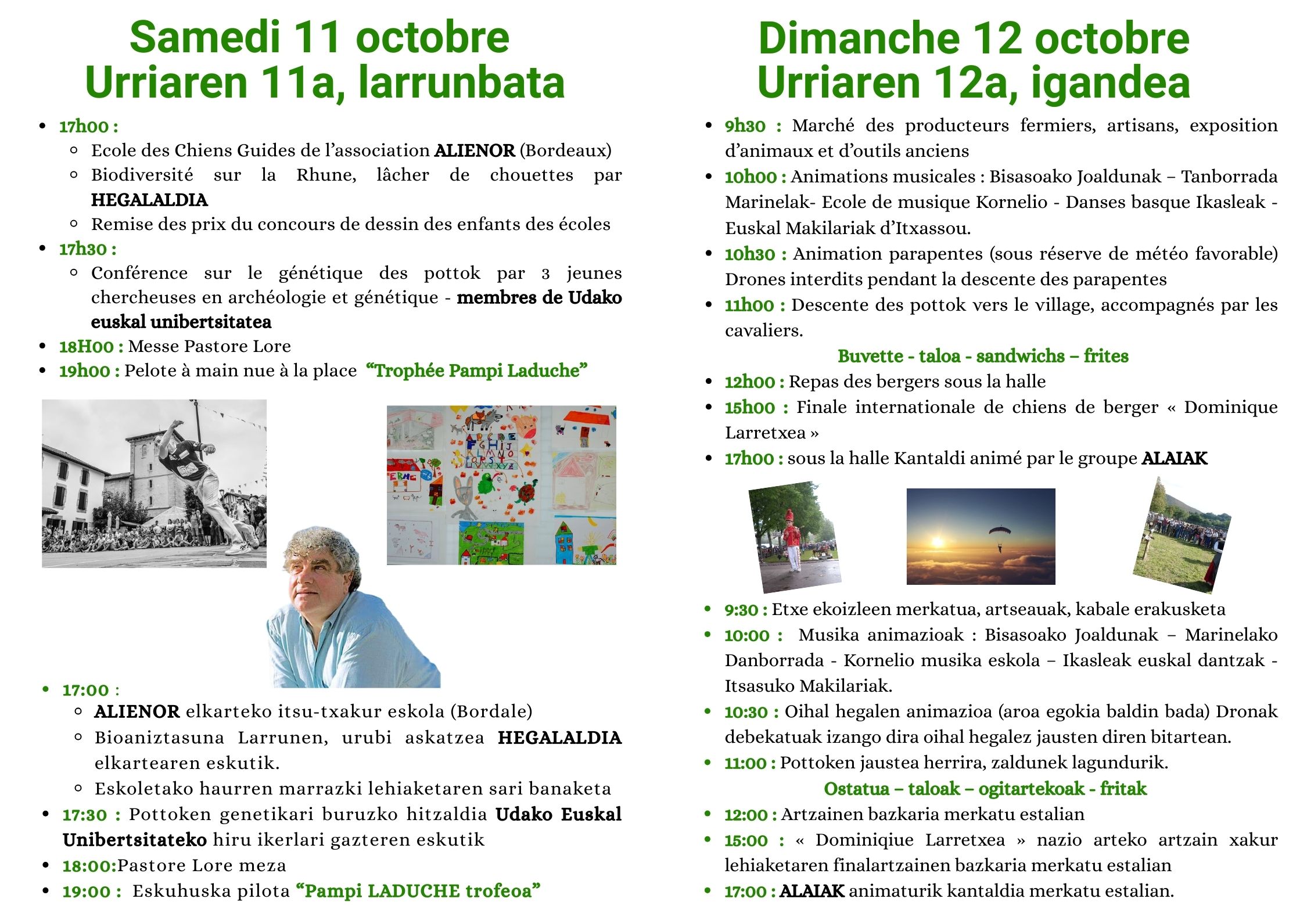 Mintzaldiak, pilota partida, merkatua, musika animazioak, pottoken herrira jaustea, bazkaria…