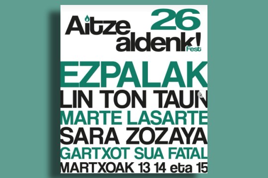 Aitzealdenk! Fest 2026 musika jaialdia martxoaren 13tik 15era bitartean ospatuko da. Hiru egunez, zazpi talde igaroko dira Sanagustin kulturguneko oholtzatik. Aurten ere, Kulturaz Kultur Kooperatibak Ayuken Management elkartearekin elkarlanean antolatu du […]