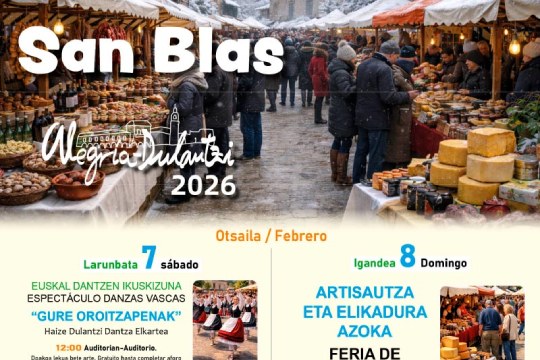 Alegría-Dulantziko San Blaseko Jaiak 2026 otsailaren 7 eta 8an ospatuko dira. San Blas Jaiak 2026 Alegría-Dulantzin: egitaraua