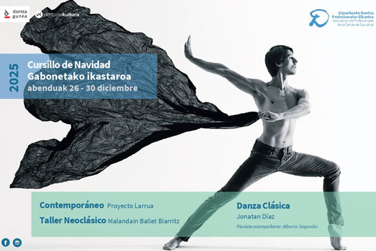 Abenduaren 26tik 30era, dantza klasikoa, garaikidea eta neoklasikoa, maila ertain eta altukoentzat. Irakasleak Larrua proiektuko Jordi Vilaseca eta Aritz Lopez (garaikidea), Jonatan Díaz (klasikoa) eta Ione Miren Aguirre (neoklasikoa) izango […]