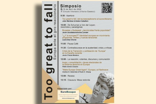 Antolakuntzak jakinarazten du: Datorren 2026ko apirilaren 16an, Gasteizko Círculo Vitorianok"Too great to fall; Europa ante el giro reaccionario" sinposioa hartuko du. EuroBasquek finantzatutako jardunaldi akademiko eta dibulgatzaile honek Europako integrazio-proiektuaren […]